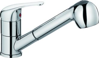Смеситель для кухни с вытяжным изливом RUSH арт.CO4240-25 из коллекции Corsica c металлической ручкой имеет рычажное управление.В смеситель установлен картридж D-40 (RSH202) с керамическими пластинами. Высота смесителя 155 мм. Излив вытяжной поворотный 360гр, 204мм. Высота излива до аэратора 106 мм. Аэратор изготовлен из пластика с нержавеющим корпусом, угол наклона аэратора- 18 гр.В комплекте гибкая подводка с латунными гайками 35см - 2 шт, универсальная присоединительная группа (шпилька-2шт), шланг с латунными гайками 1,5м, фум-лента, индивидуальный пакет, паспорт, гарантийный талон.
