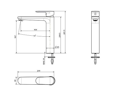 • Высота смесителя: