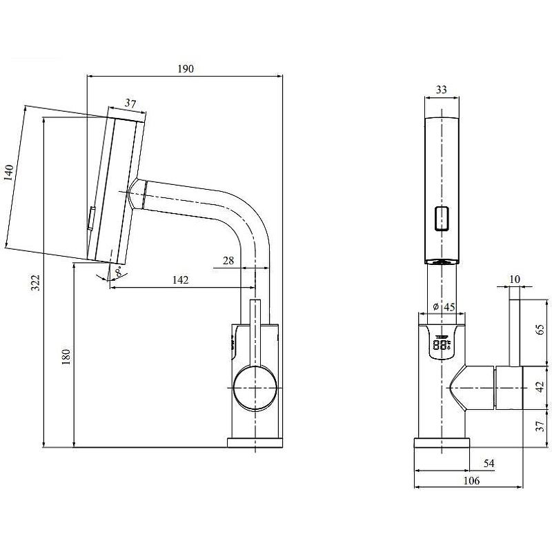 - Длина излива, см:14.2