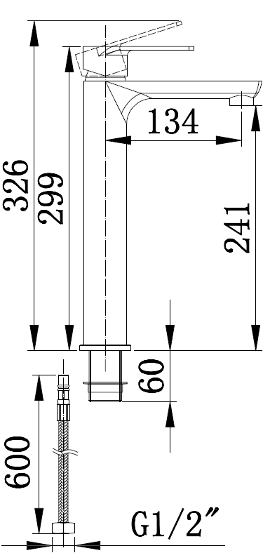 • Высота смесителя: