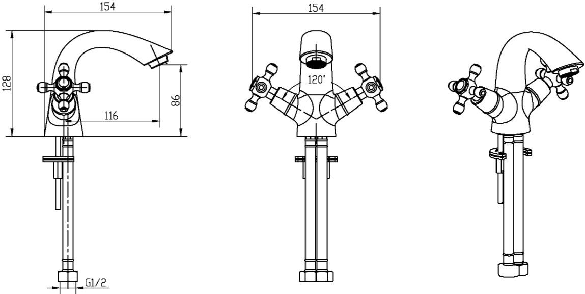 • Высота смесителя: