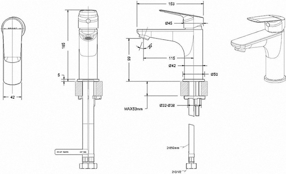 Артикул: F1429564CP-9-ENGСмесители для раковины Rhein производимые под проверенным немецким товарным знаком Bravat, достойны занять место в любой ванной комнате. Линейка включает модели с изогнутым и прямым изливом, что позволяет подобрать оптимальный вариант для помещения с любым стилистическим оформлением. Его высота зависит от модели. Удобное рычажное управление гарантирует удобство пользования. Гибкая система подводки упрощает монтаж.