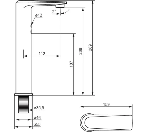 • Высота смесителя: