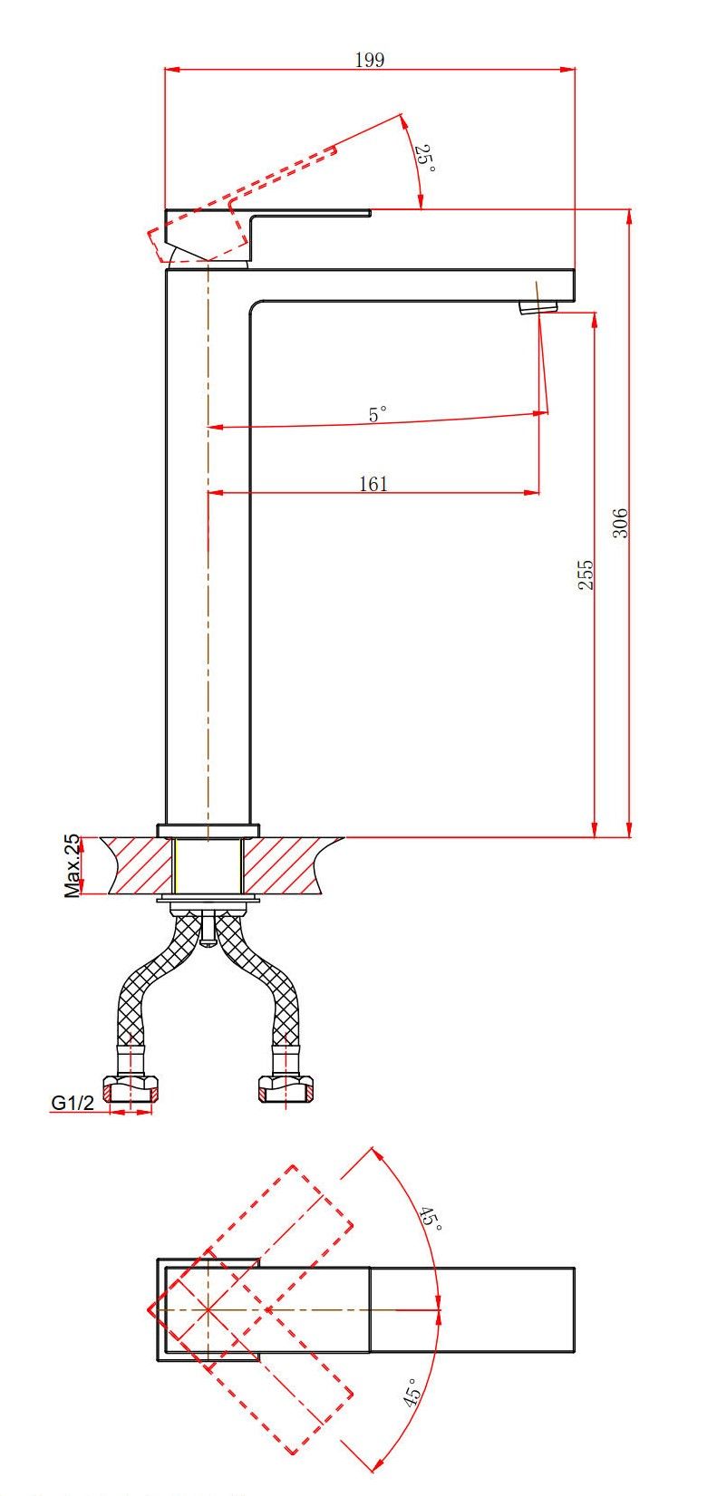 - Высота смесителя:30.6