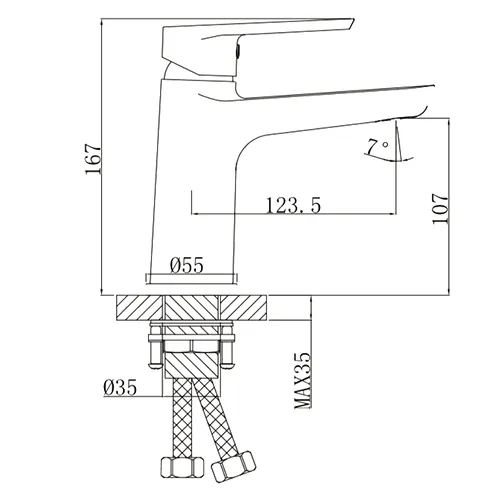 Смеситель для умывальника Gappo G1067 - однорычажная модель с фиксированным изливом. Корпус смесителя изготовлен из латуни. Смеситель устанавливается на горизонтальную поверхность. Цвет - хром.