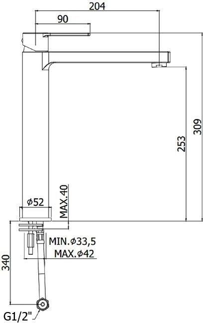 Смеситель для раковины высокий БЕЗ д/к, черный матовыйСмеситель для раковины Paffoni Ringo RIN081NO.ВНИМАНИЕ! В монтажной схеме указан европейский стандарт подводки 3/8, мы предлагаем комплект, адаптированный к российским условиям, со стандартом подводки 1/2.Комплектация: