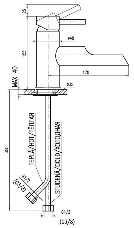 • Высота смесителя: