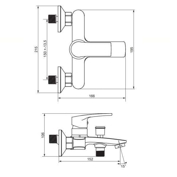 - Длина излива, см:15.2