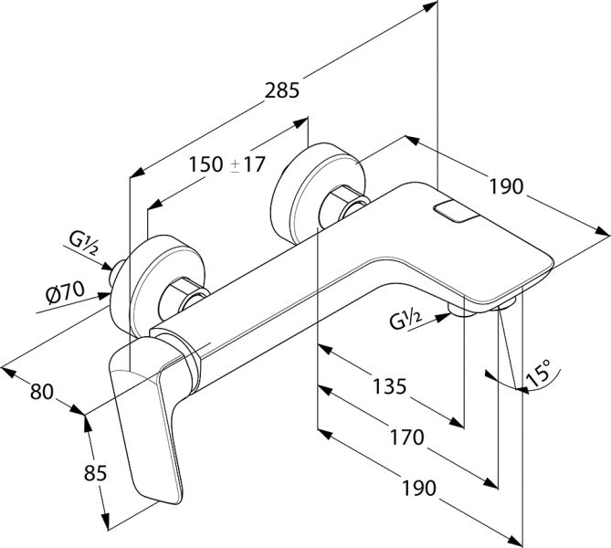 • однорычажный смеситель для ванны и душа DN 15