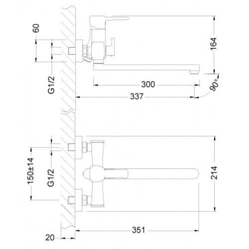 Смеситель универсальный с плоским поворотным изливом 300 мм