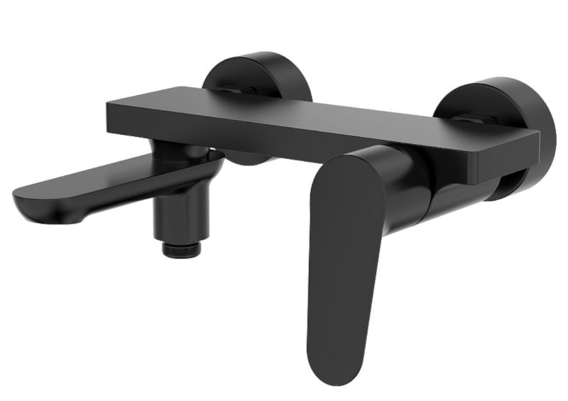 Смеситель для ванны Raglo R31.30.06.Цвет: черный.Материал: латунь.Управление: однорычажное.Механизм: керамический картридж.Излив: поворотный. Аэратор.Стандарт подводки: G 1/2.Отверстия для монтажа: 2.Монтаж: на стену.