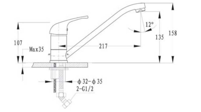 Смеситель для кухонной мойки D=35ммКорпус латунныйГибкая подводка 1/2Технический паспортГарантия 3 года - на корпус смесителя, 1 год - на картридж и декоративное покрытие из искусственного камня, 6 месяцев - съемные комплектующие (шланги, прокладки, аэратор, лейку)