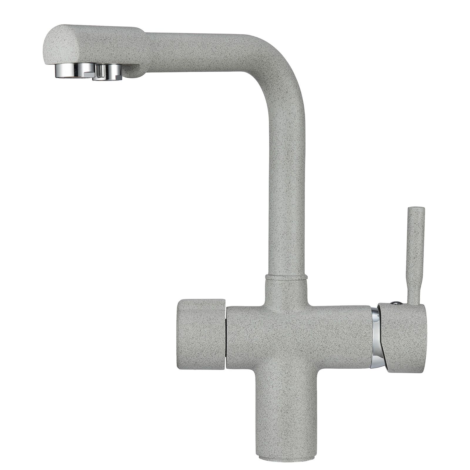 Смеситель для кухонной мойкиЦветовая гамма: Алюминиум, Классик, Антик, Песок, Пирит, Базальт, Арктик, Эспрессо, Графит, Черный, ШварцГибкая подводка (3 шт.); набор для крепления; прокладки уплотнительные (2 шт.); аэраторГарантийный срок от производителя - 5 лет