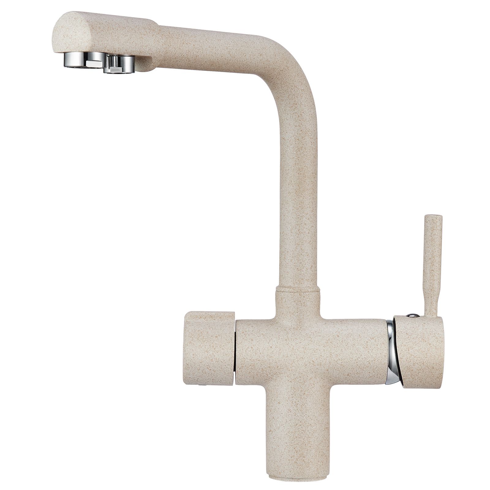 Смеситель для кухонной мойкиЦветовая гамма: Алюминиум, Классик, Антик, Песок, Пирит, Базальт, Арктик, Эспрессо, Графит, Черный, ШварцГибкая подводка (3 шт.); набор для крепления; прокладки уплотнительные (2 шт.); аэраторГарантийный срок от производителя - 5 лет