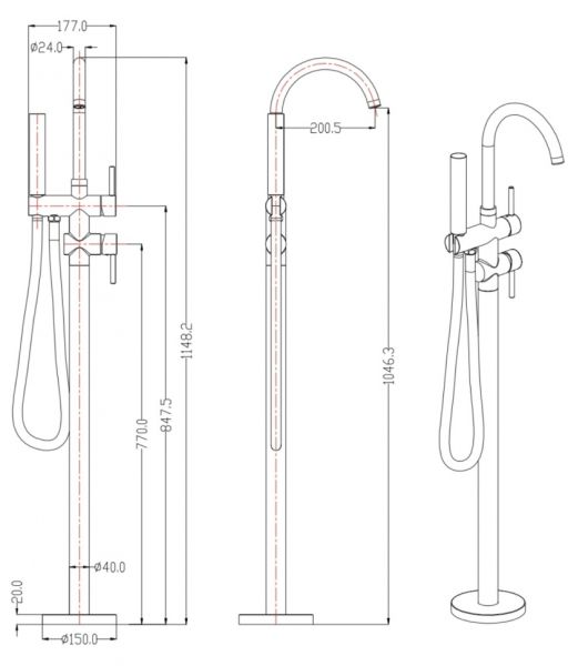 Смеситель напольный Groсenberg GB900 Бронза