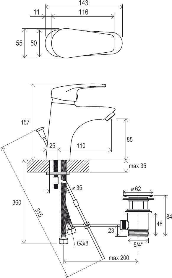 • соединительные шланги: гибкий 350 мм, диаметр G3/8