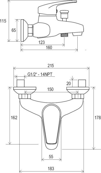 • межосевой размер смесителя : 150 мм