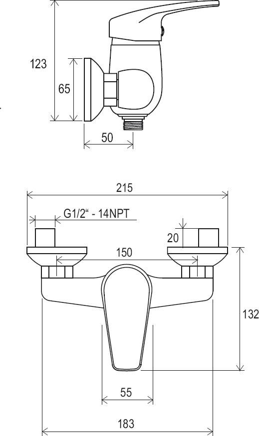 - межосевой размер смесителя : 150 мм