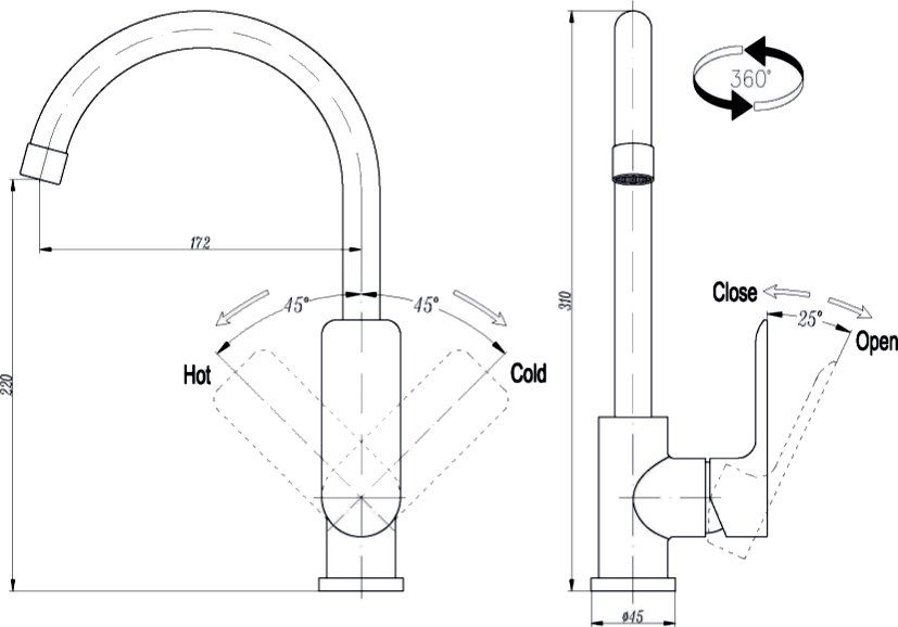 Защита от обратного потока обеспечивается встроенным клапаном, предотвращающим сток воды обратно в трубопровод