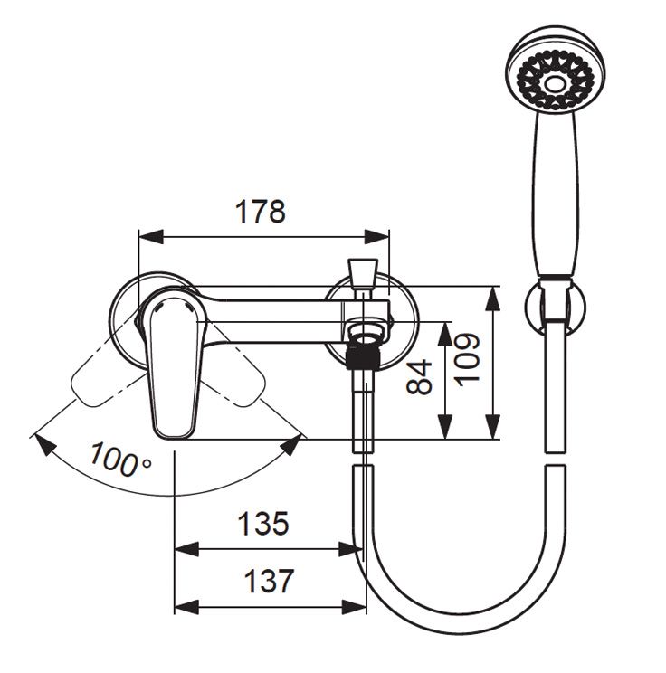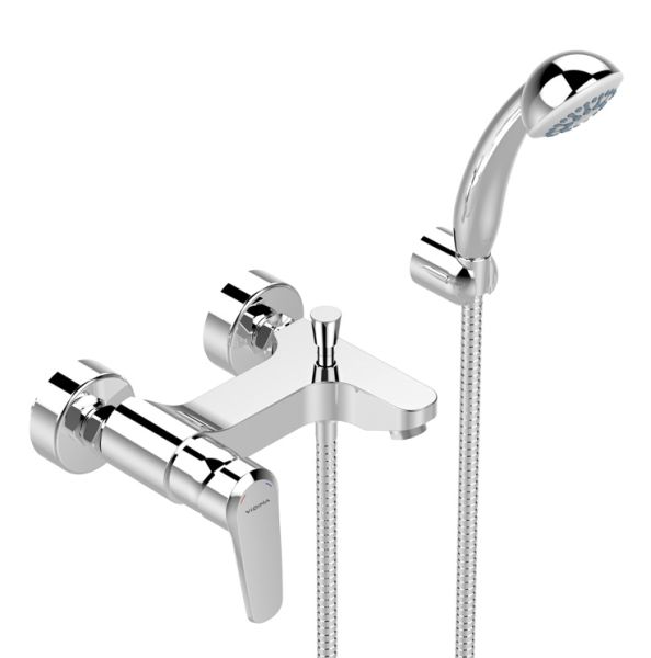 BALANCE Настенный смеситель для ванны/душа, душевой гарнитур в комплекте (душевая лейка Ø70 мм, металлический шланг 1500 мм, держатель для лейки).