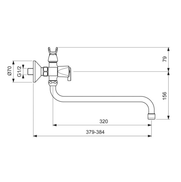 PRACTIC Смеситель для ванны/душа, трубчатый поворотный излив 320 мм с керамическим переключателем, душевой гарнитур в комплекте (душевая лейка Ø70 мм, металлический шланг 1500 мм, держатель для лейки).Смеситель двухрычажный