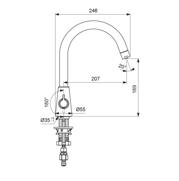 UNO Смеситель для кухонной мойки с клапаном для подключения фильтра питьевой воды.Смеситель однорычажный