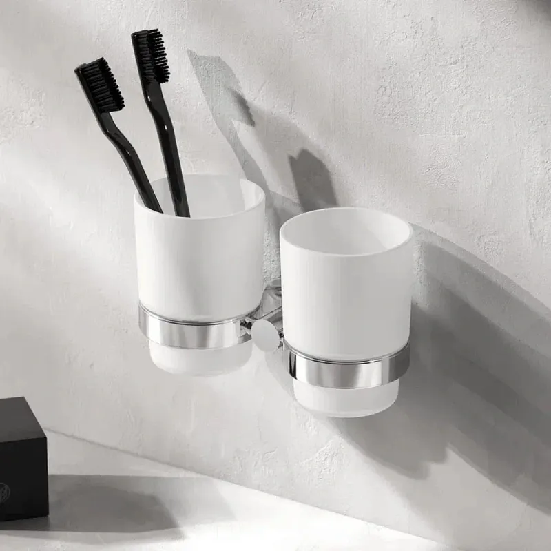 Стакан для зубных щеток AM.PM Sense A74343400 хромБогатство и вариативность коллекции аксессуаров Sense L позволит подобрать все для создания по-настоящему красивой семейной ванной комнаты. В этой коллекции представлены: безопасные поручни для ванны вместительные двойные стаканы функциональная угловая корзина для душа. Коллекция аксессуаров выполнена в скандинавском стиле для которого характерны простые и симметричные формы невероятная эргономичность и проработанные до мелочей детали. Все продукты коллекции произведены из сплава металлов высочайшего качества с многослойным стойким к истиранию хромовым покрытием. В аксессуарах используется закаленное матовое стекло которое абсолютно безопасно: даже разбиваясь оно не оставляет острых осколков.