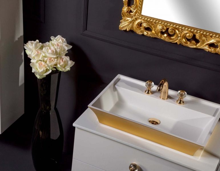 Столешница изготовлена из инновационного материала Solid Glass, в состав которого входит мраморная крошка и стекло. Материал черезвычайно прочен, не оставляет следов царапин и обладает неповторимой глубиной белого цвета.