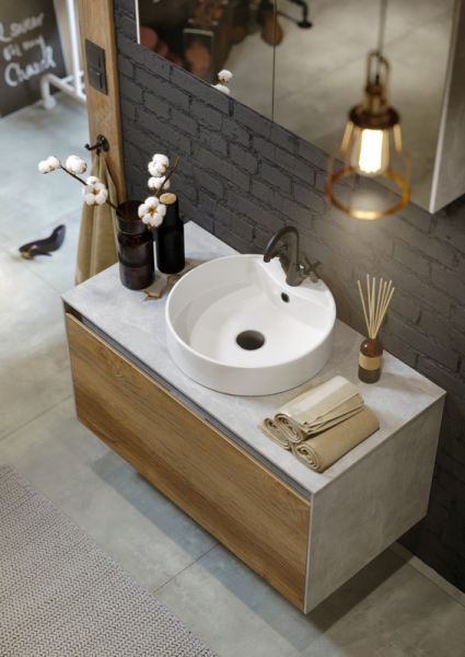 Mobi корпус тумбы под умывальник подвесной, цвет бетон светлый, 80 см без фасадов