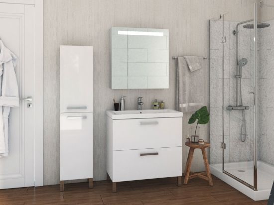 Cersanit - Отличное качество, по доступной цене!Высота 68смШирина 69смГлубина 44.6смТумба под раковину MELAR выполнена в нетеряющем актуальности белом цвете. Гладкие глянцевые фасады ящиков дополены хромированными ручками четкой геометричесокй формы. Скрытые направляющие ящиков снабжены доводчиками, что позволяет закрывать ящик мягко и бесшумно. Тумбу можно как подвешивать на стенку, так и устанавливать на ножки, что делает ее универсальным и функциональным решением для любой ванной комнаты.
