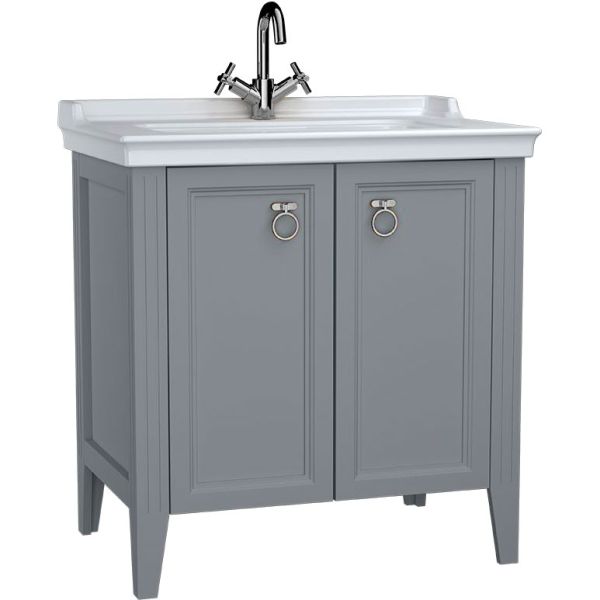 Шкаф Valarte 80 см с раковиной, с дверцами, цвет серый матовый