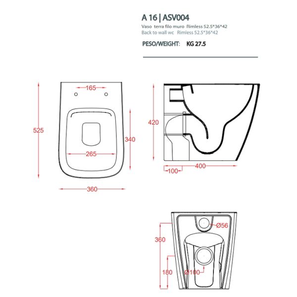 Унитаз Artceram A16 ASV004 01 86 белыйARTCERAM A16 Унитаз напольный 360х520 мм., приставной, безободковый, в комплекте с крепежом, цвет белый глянцевый, декор Cementina
