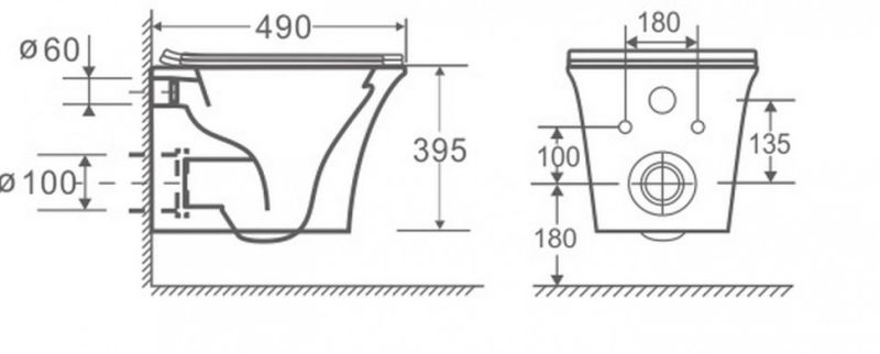 • Прилегание унитаза к стене: