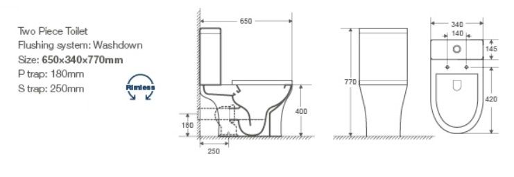- Режим смыва воды:две кнопки (двухрежимный)