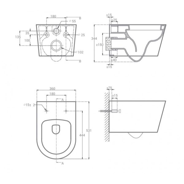 Унитаз Hansmann Keramik Uno УНИ0014 подвесной с сиденьем МикролифтДлина, см 48,5