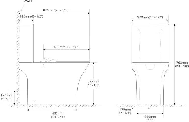 • Прилегание унитаза к стене: