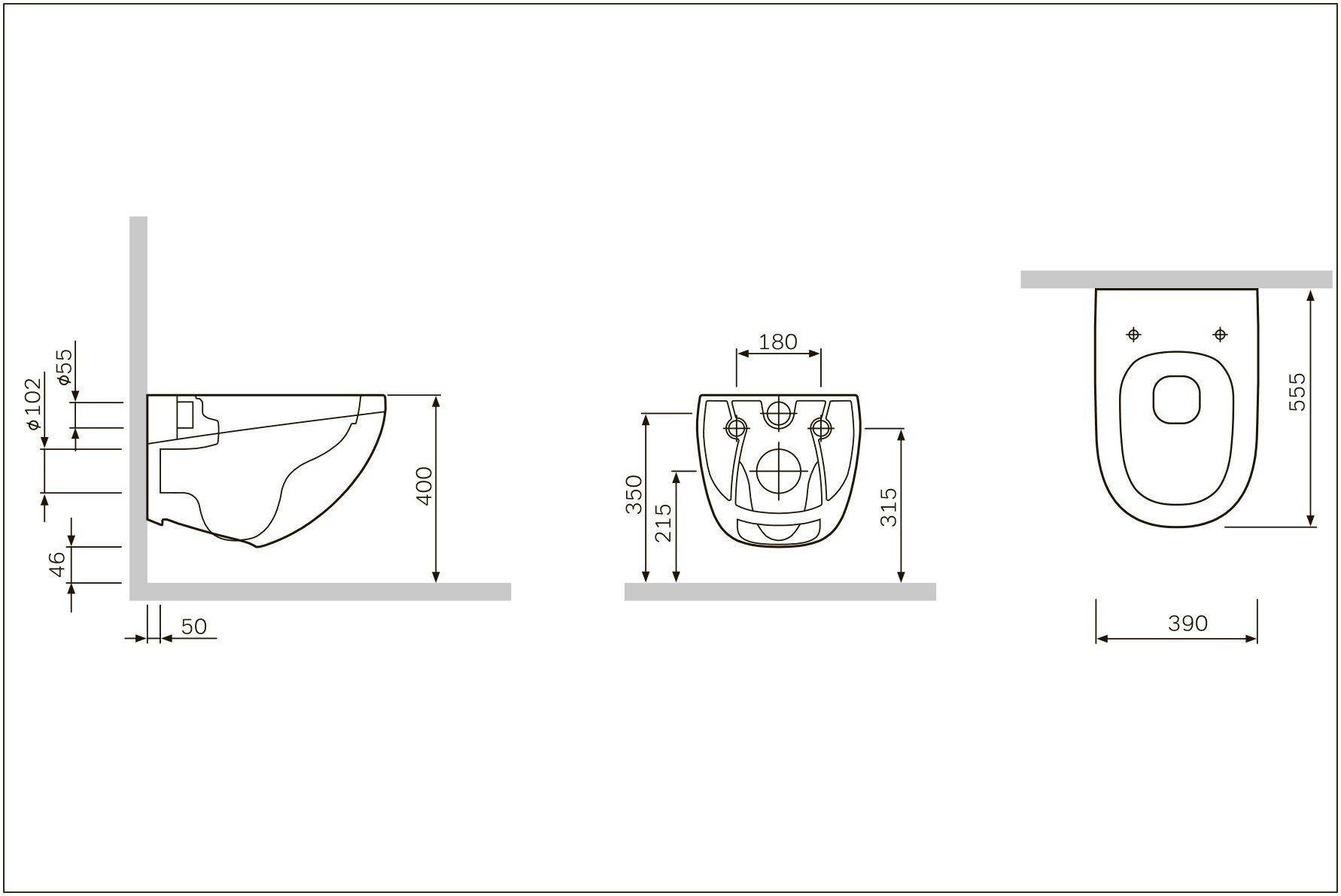 • Идеальное прилегание к стене, скрытые крепления и фановый выход;