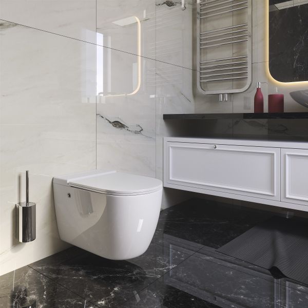 • Безободковая система слива позволяет равномерно ополаскивать всю поверхность чаши.