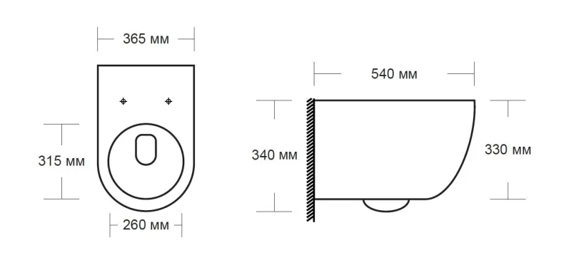 - Прилегание унитаза к стене:вплотную