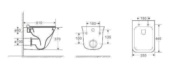 • Прилегание унитаза к стене: