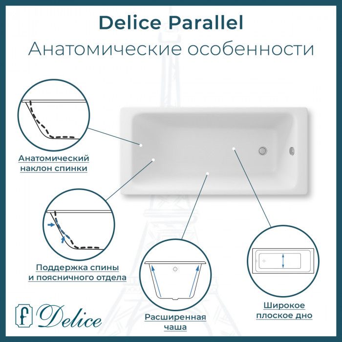 Ванна чугунная Delice Parallel DLR 220506 180x80см белый купить
