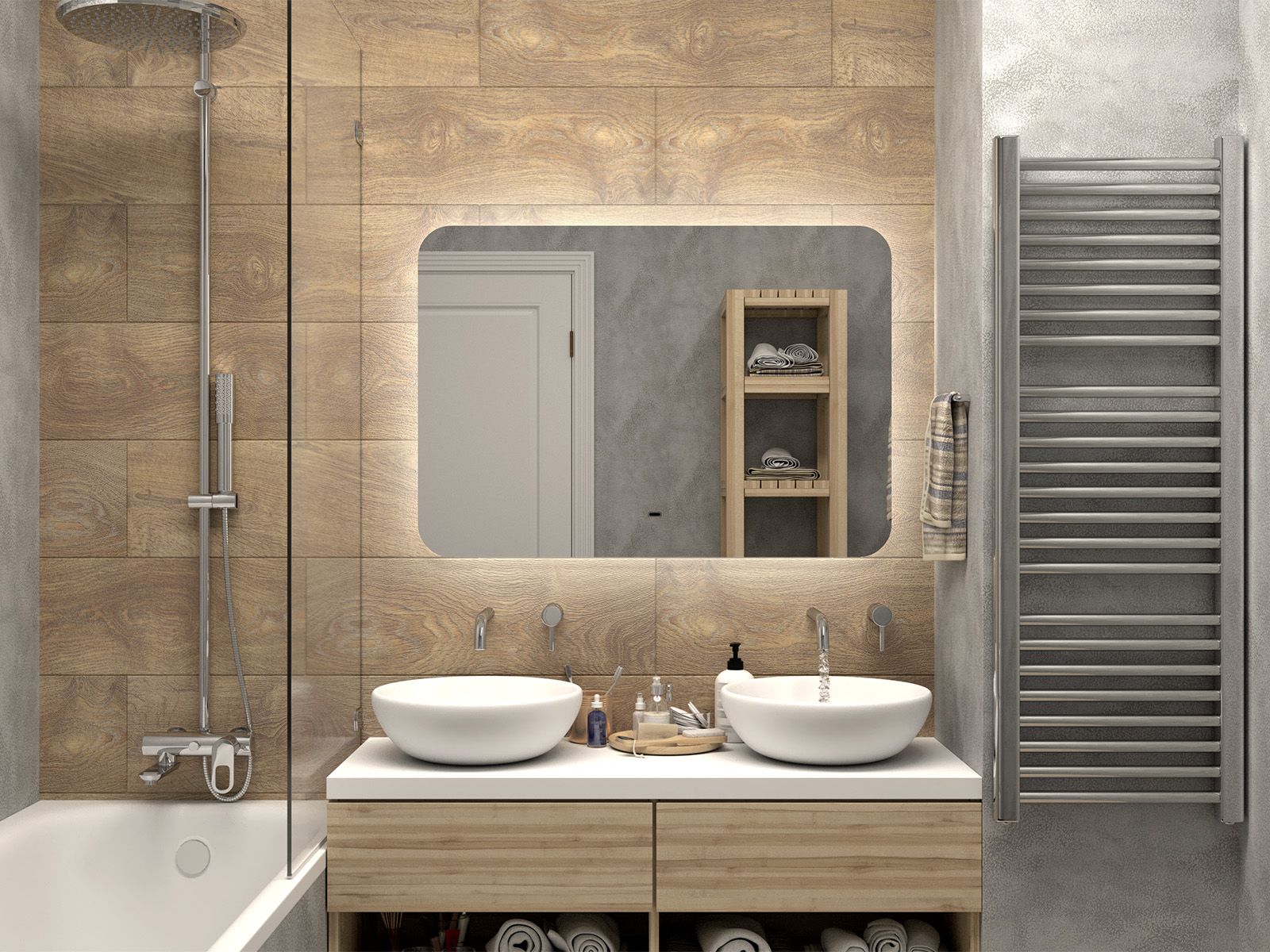Зеркало с подсветкой для ванной комнаты — это элемент интерьера, который сочетает в себе функции, эстетику и современный дизайн. Его изящная форма и тонкие линии легко вливаются в любое пространство, создавая атмосферу утонченности и уюта.Интегрированная светодиодная подсветка обрамляет зеркало, даря мягкий, рассеянный свет, который не только позволяет удобно наносить макияж, но и наполняет ванную комнату теплом и позитивной энергией.Классический дизайн позволяет использовать его в различных стилях – от минимализма до современного эклектичного оформления. Оно прекрасно вписывается в любую цветовую гамму, будь то нейтральные тона или более яркие акценты.