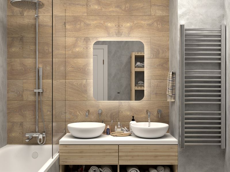 Зеркало с подсветкой для ванной комнаты — это элемент интерьера, который сочетает в себе функции, эстетику и современный дизайн. Его изящная форма и тонкие линии легко вливаются в любое пространство, создавая атмосферу утонченности и уюта.Интегрированная светодиодная подсветка обрамляет зеркало, даря мягкий, рассеянный свет, который не только позволяет удобно наносить макияж, но и наполняет ванную комнату теплом и позитивной энергией.Классический дизайн позволяет использовать его в различных стилях – от минимализма до современного эклектичного оформления. Оно прекрасно вписывается в любую цветовую гамму, будь то нейтральные тона или более яркие акценты.