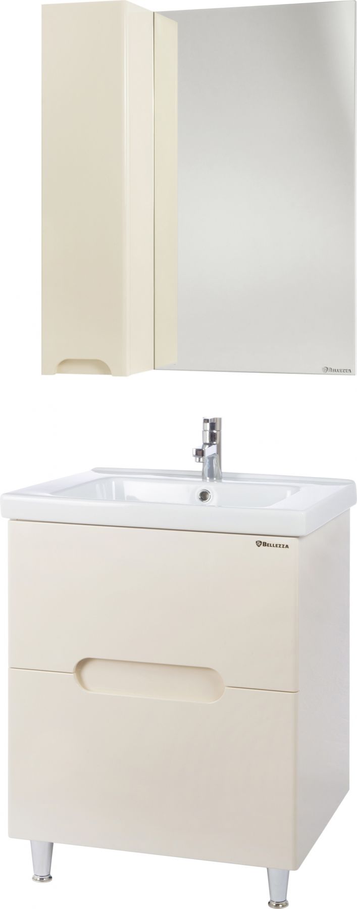 В производстве используют только качественные влагостойкие материалы (ВЛДСП), в составе которых полностью отсутствуют опасные вещества. Данная серия выполнена в эксклюзивном дизайнерском решении в лучших традициях современного стиля. Бежевый, основной цвет исполнения Bellezza, гармонирующий с большинством интерьерных решений. Шкаф-зеркало предусматривает удобную и вместительную систему хранения. Зеркало Bellezza оснащено галогеновой подсветкой, позволяющей комфортно провести утренние процедуры.